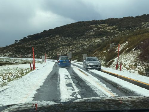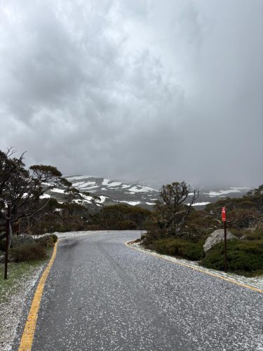 Hail earlier at Charlotte Pass